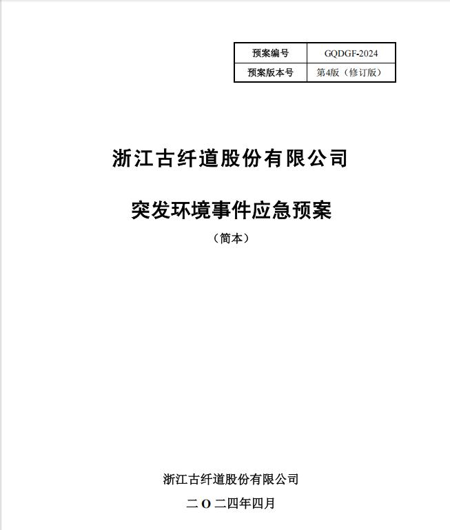 浙江古纤道股份有限公司突发环境事件应急预案